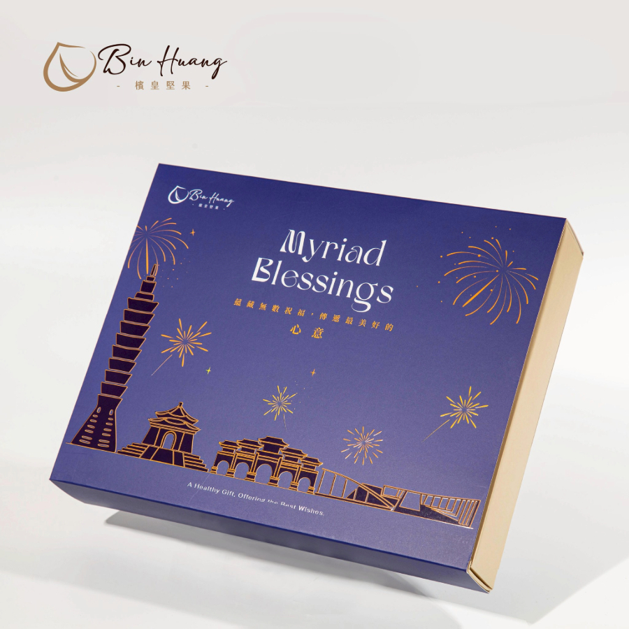 禮盒是採內斂的藍紫色做基底,金色線條點綴,再加上台灣著名景點圖案,蘊藏無數祝福,傳遞最美好的心意~送禮的最佳首選!