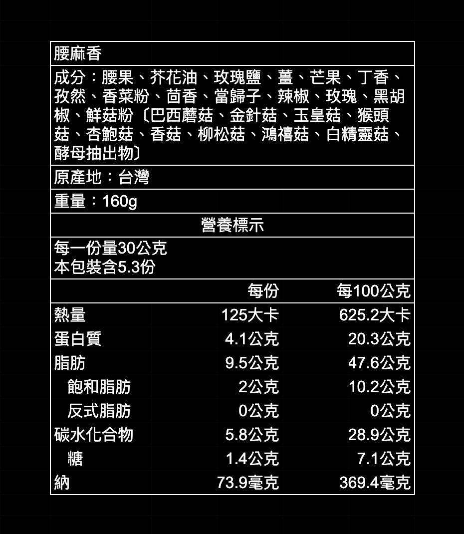 選用特級腰果,以低溫烘焙保留酥脆原味,一入口,椒麻香在舌尖跳舞,咖哩香氣溫柔包裹,酥脆腰果層層展開風味故事