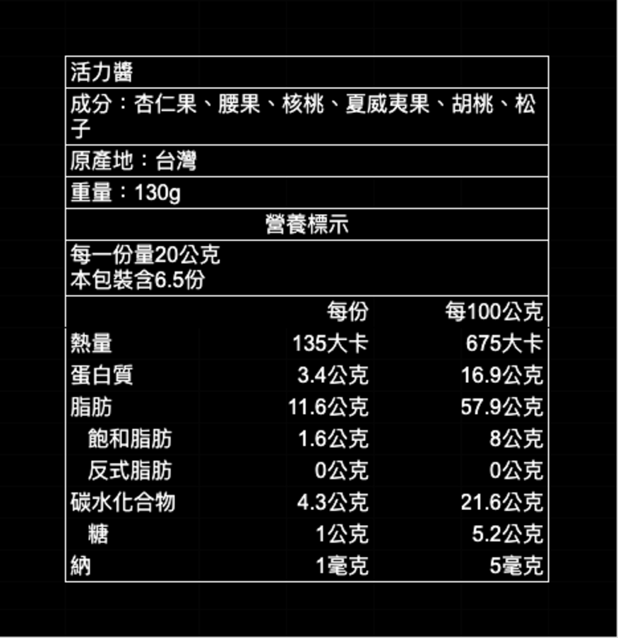 匯聚了杏仁果、腰果、核桃、夏威夷果、胡桃及松子六大堅果精華,以 100% 全堅果低溫研磨而成。